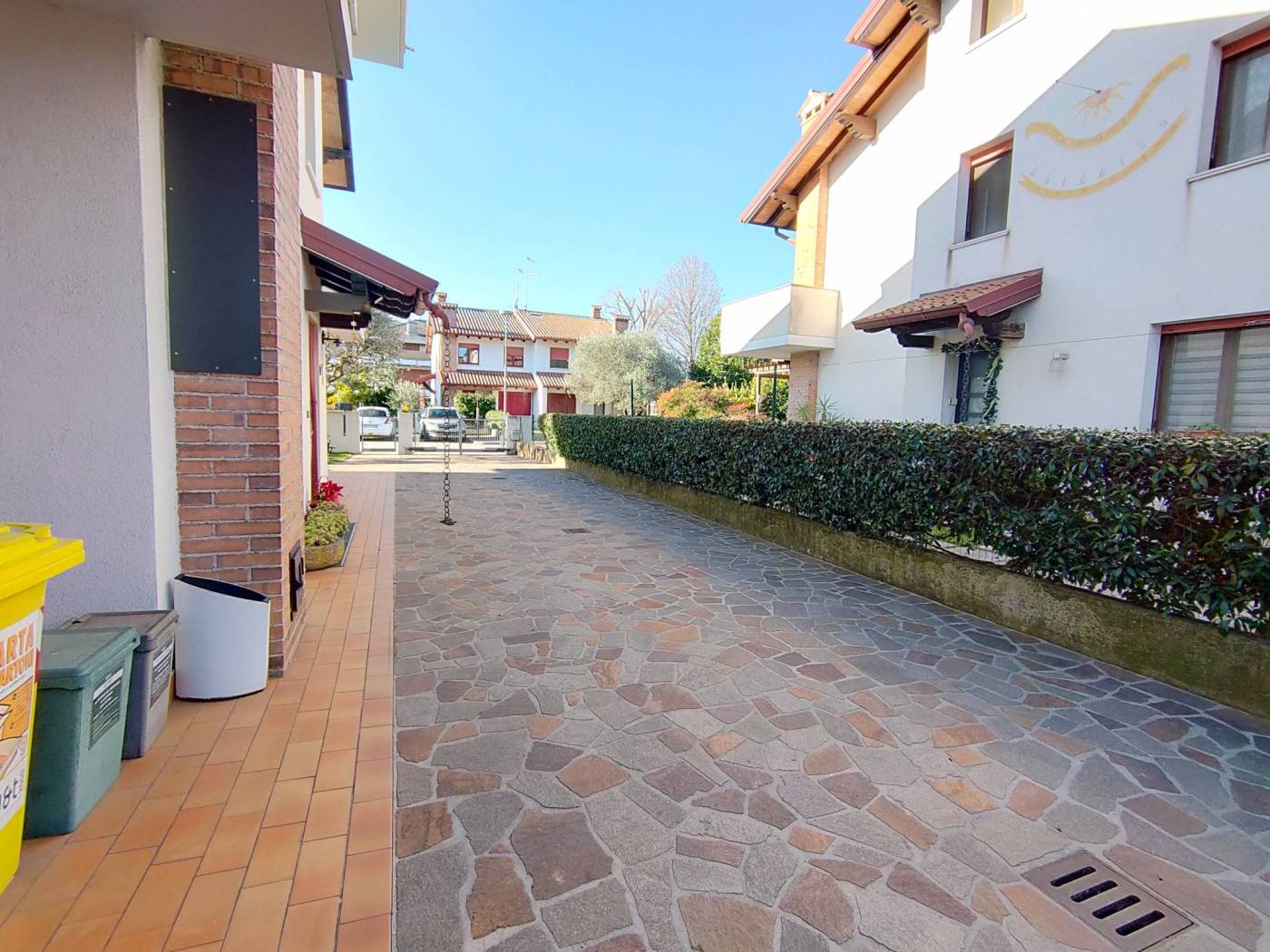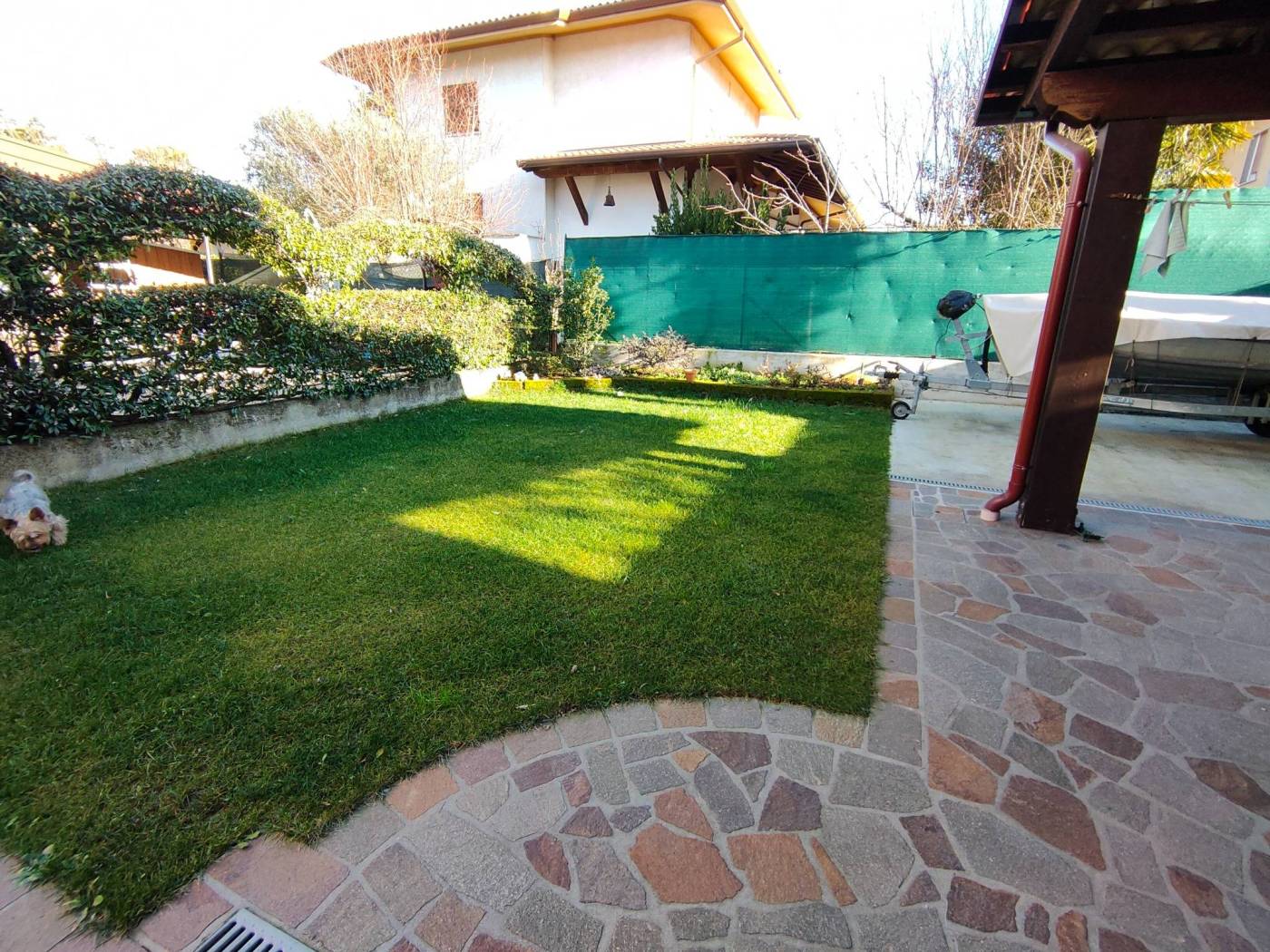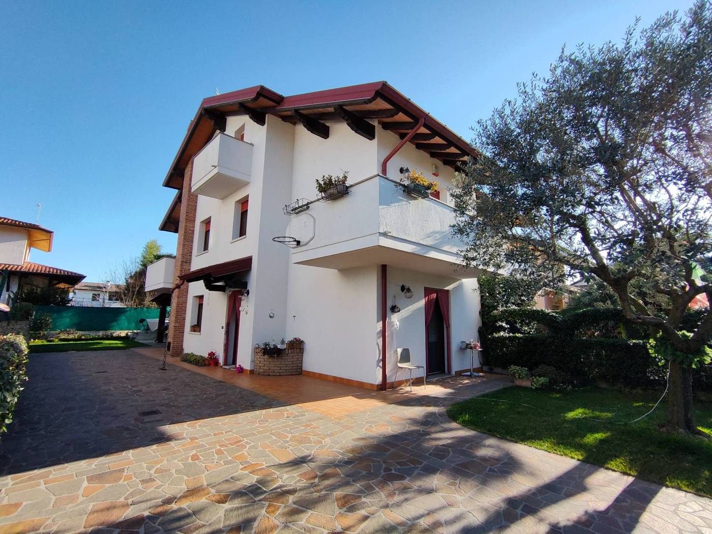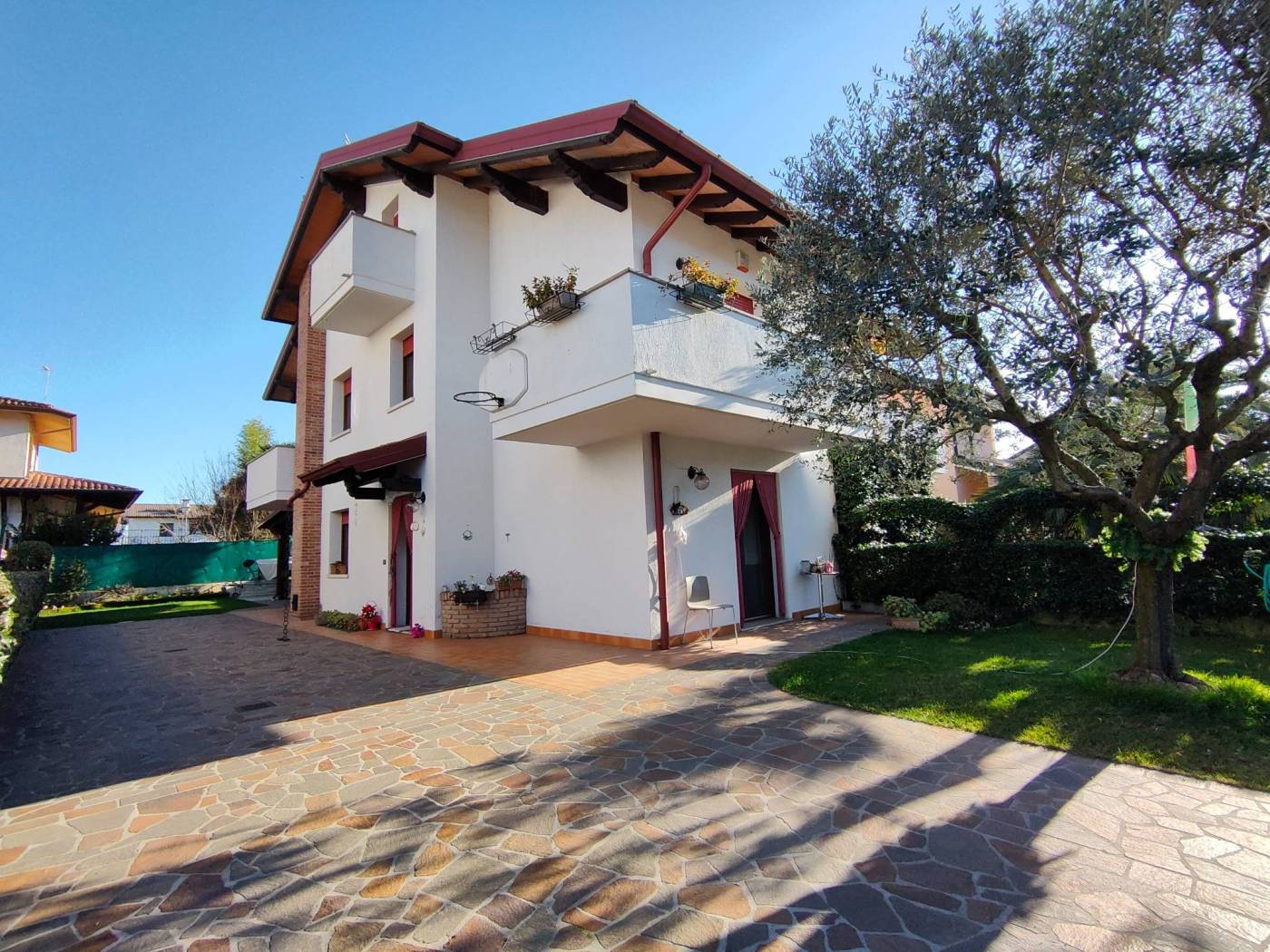 Elegante villa bifamiliare con giardino realizzata nel 1998 – Lauzacco (Pavia di Udine) Nel cuore di una riservata e silenziosa zona residenziale della frazione di Lauzacco, proponiamo in vendita una raffinata villa bifamiliare, ottimamente mantenuta e curata in ogni dettaglio, sviluppata su quattro livelli e caratterizzata da ambienti ampi e funzionali. Distribuzione degli spazi: Piano scantinato: Accogliente taverna, lavanderia e locali accessori, ideali come spazi conviviali o di servizio. Piano terra: Ingresso, cucina abitabile con accesso diretto al giardino privato, servizio, soggiorno luminoso impreziosito da caminetto a pellet e arredi su misura, garage e tettoia coperta per due auto. Primo piano: Tre camere da letto, bagno finestrato e due terrazzi. Secondo piano: Ampio vano mansardato open space, bagno e pratici ripostigli sottotetto, ideale come zona relax, studio o suite indipendente. Dotazioni e plus: Impianto di climatizzazione caldo e freddo, Impianto fotovoltaico da 3,85 kW con pannelli di recente installazione (2024). Sistema di allarme volumetrico e perimetrale collegato con scheda telefonica, Contesto tranquillo e residenziale. Prezzo richiesto: Eu. 265.000. Una soluzione abitativa di pregio, perfetta per chi desidera comfort, sicurezza e qualità costruttiva, in una delle zone più apprezzate del comune di Pavia di Udine.